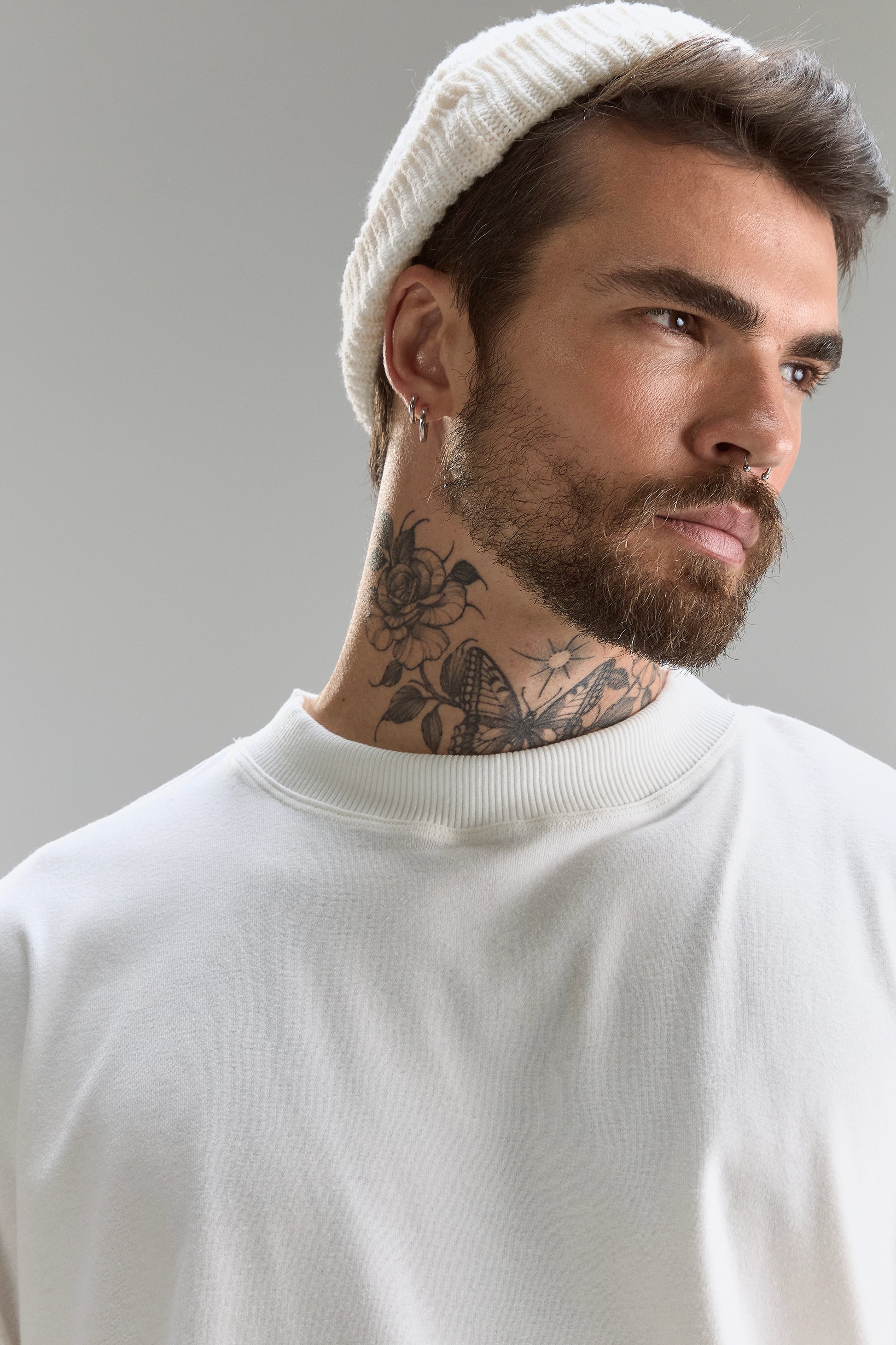 Oversized INC em malha premium, confeccionada com 50% algodão e 50% poliéster. Possui caimento estruturado, gola canelada reforçada e etiqueta emborrachada. Produção própria, pensada em cada detalhe para unir estilo, conforto, durabilidade e autenticidade.